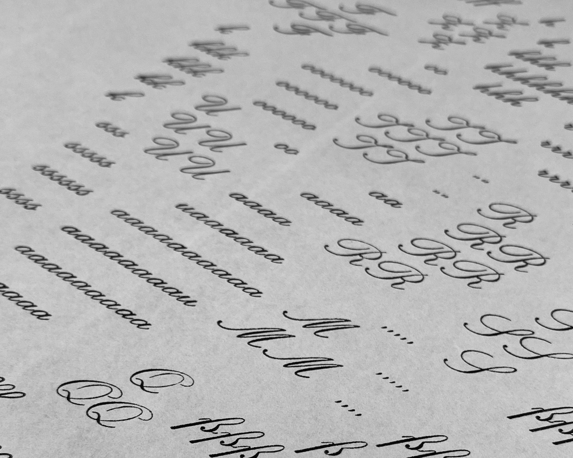 This Winter term, Typo Club is a gathering under the sign of calligraphy. Copperplate or Anglaise can be written by pen or by brush. As so-called “Woman’s Hand”, this style was probably exposed to gender-specific stereotypes like no other. Thus, its discovery equals to the exploration of a lost world and, beyond that, offers practical skills in the understanding of rhythm, flow and modulation in calligraphic writing. Plus, it is fun—it really is!